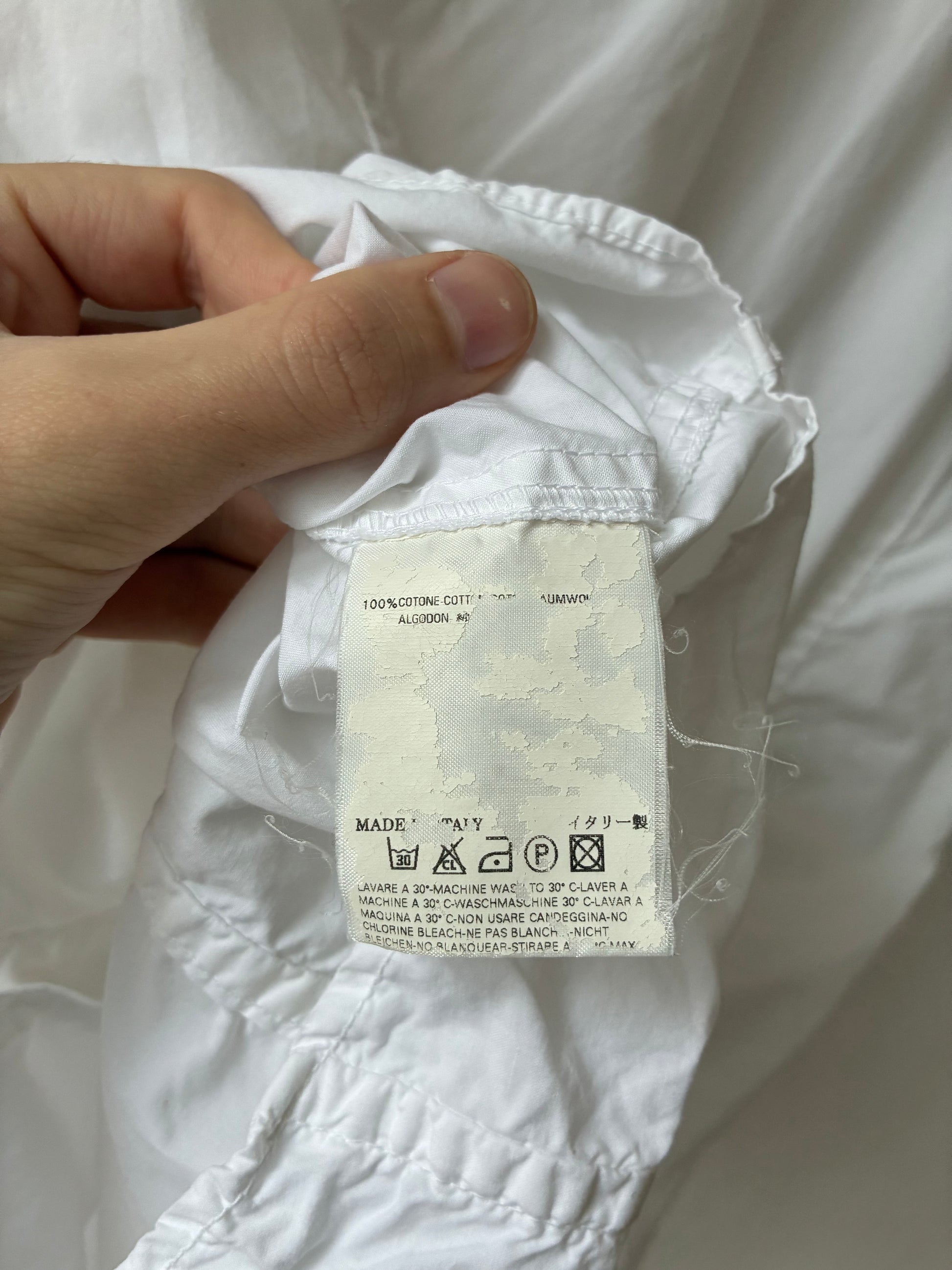 From earle 2000s. Jersey sleeves. Lots of buttons. Raw edges.