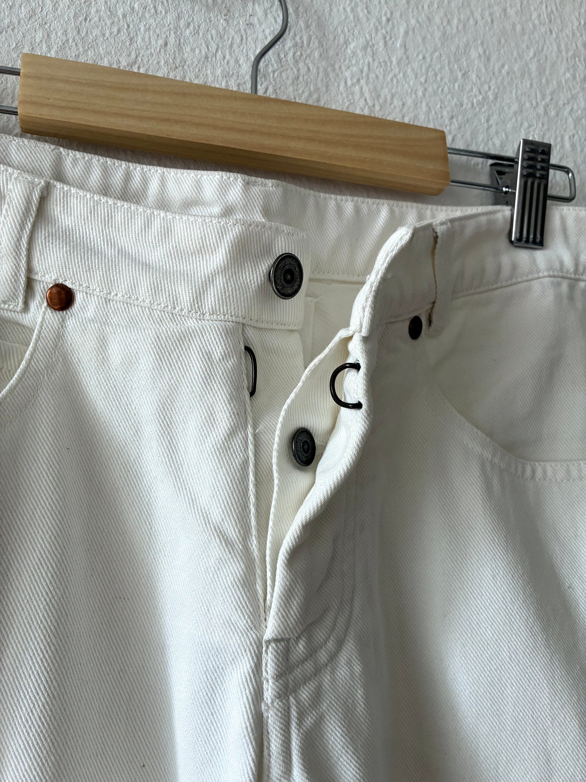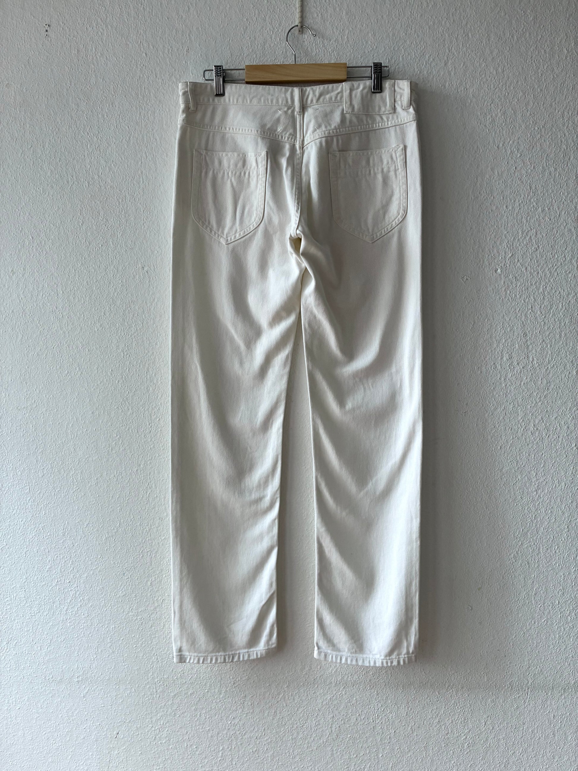 Beautiful fit. Straight cut with slightly shortened rise. Timeless basic to have. Will get better with wear.
