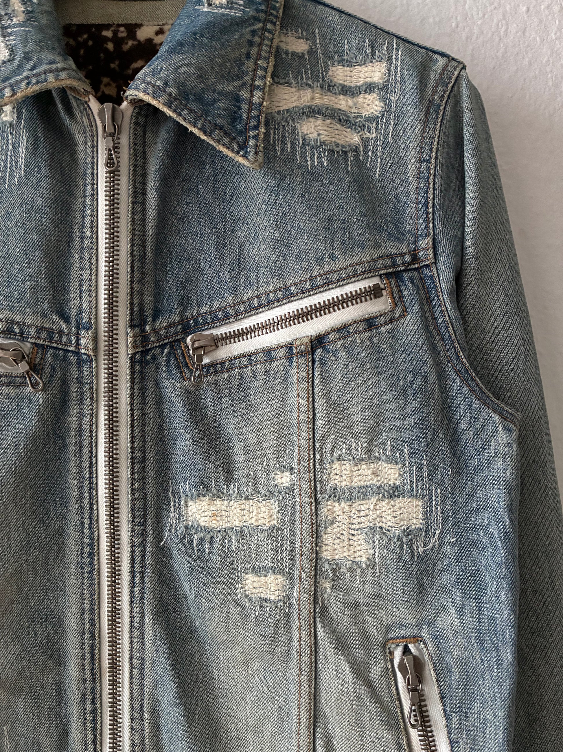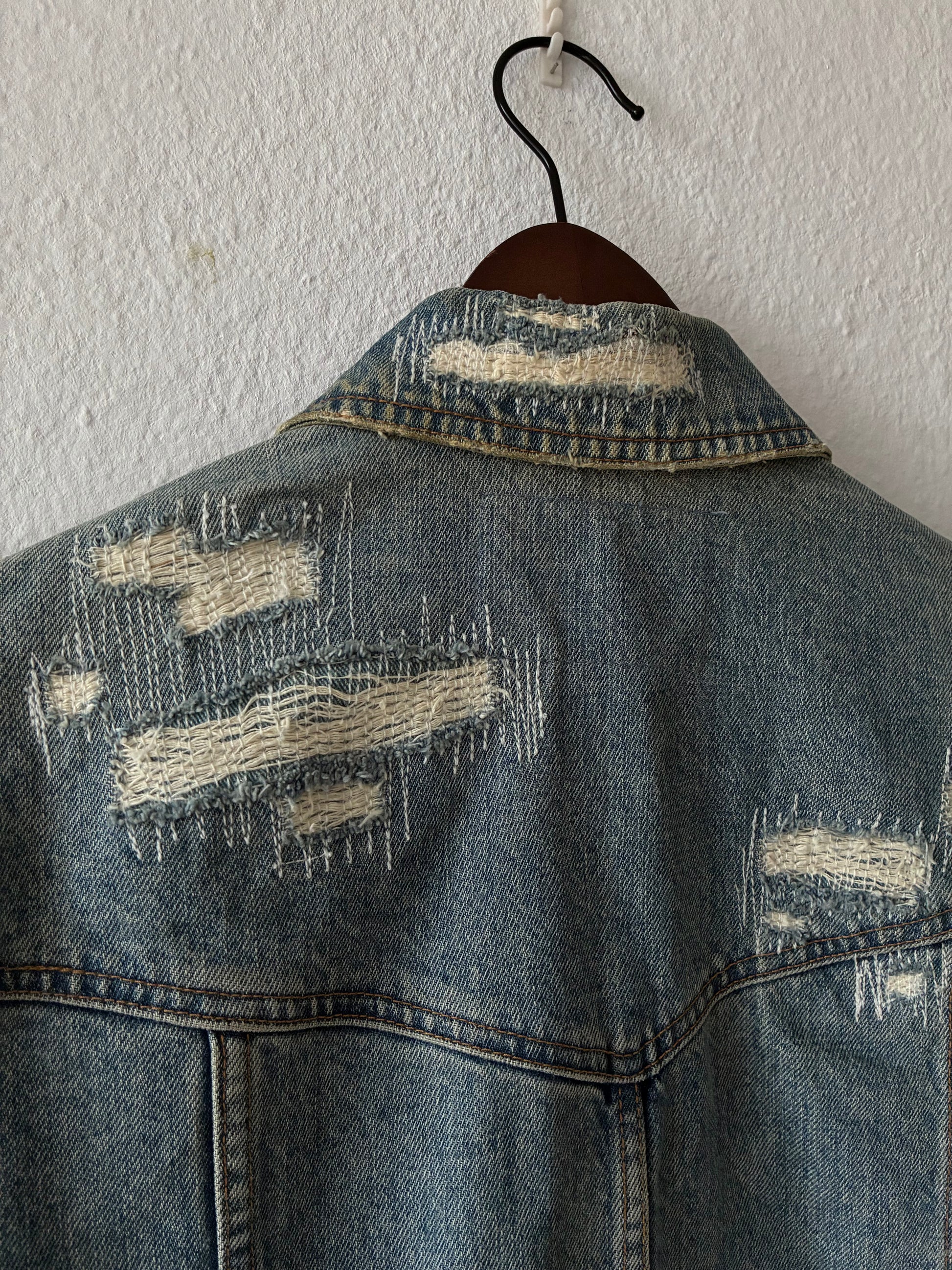 Shellac Distressed and Repaired Denim Jacket