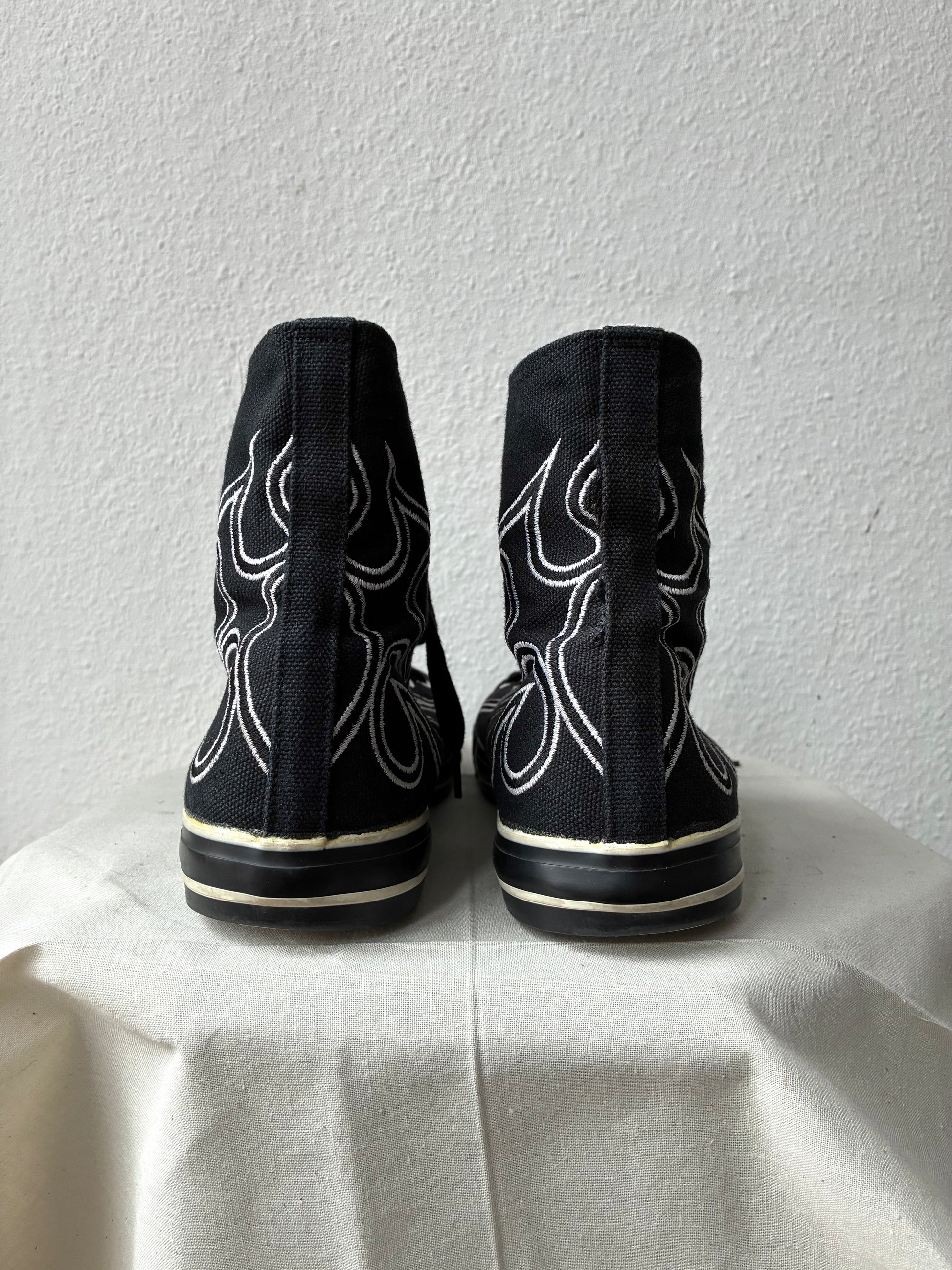 The unfamous tribal Converse from Yohji. Very rare pair. Only a few made. These exact ones were bought backstage at one of Yamamoto's main line runway shows in the early 2000s. Made of thick canvas. Good quality, definitely not Converse standards.